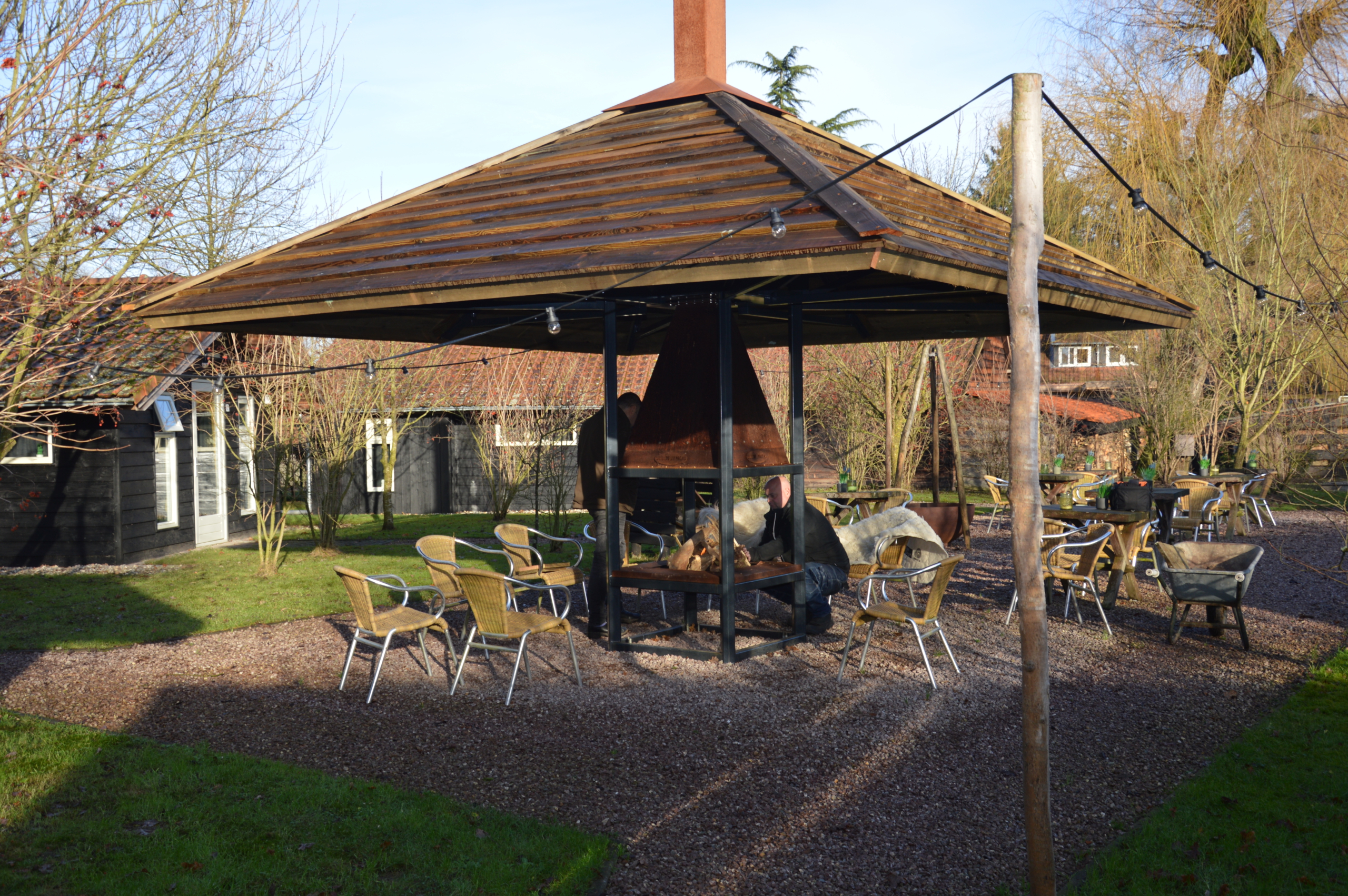 Wanneer de regen eindelijk stopt, blijft iedereen zitten. Het vuur zorgt voor warmte, het dak voor beschutting en het moment voor een soort spontaniteit die je niet kunt plannen.